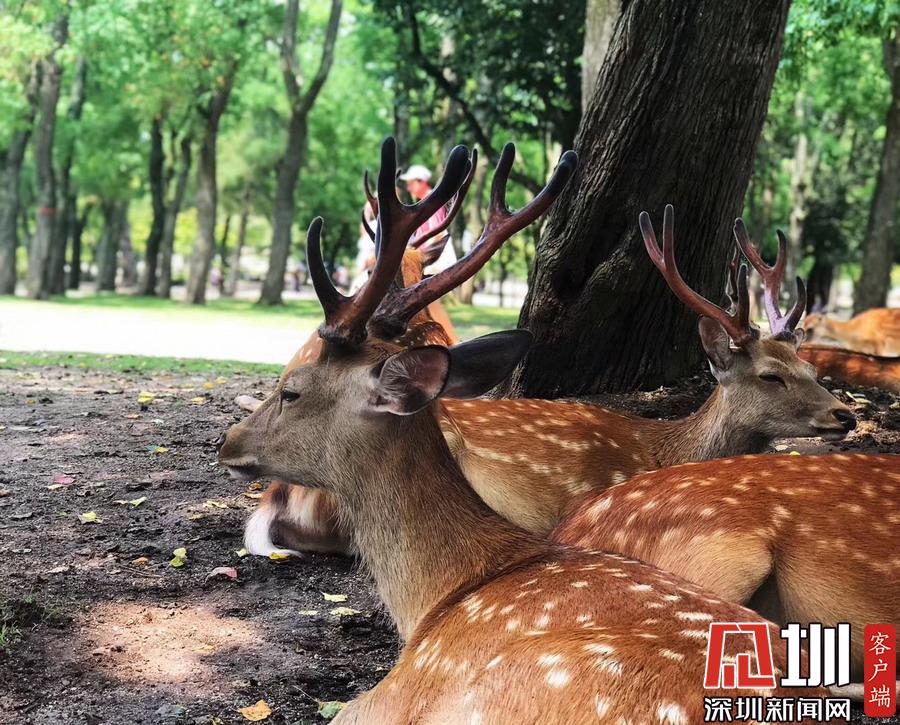 成群嬉戲于公園里的鹿,因與春日大社流傳的白鹿傳說有關而受到保護,且被指定為國家的自然保護動物。李仁奇攝