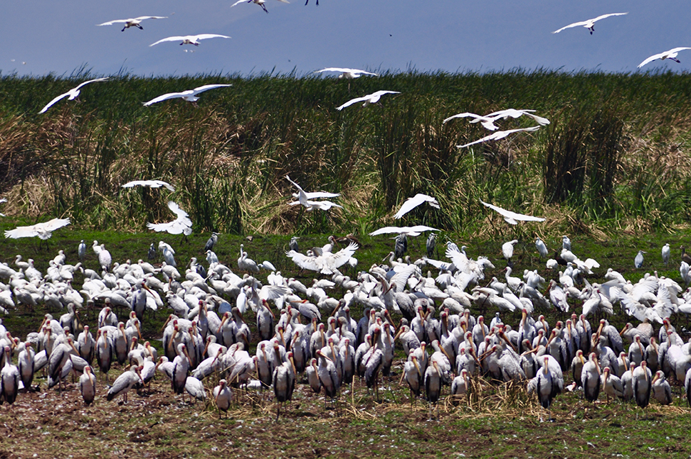 有食鹽、天然堿、鳥糞層等資源。游覽勝地,有"飛禽樂園"之稱。每年一定時(shí)期,紅鶴云集湖區(qū),綿延數(shù)公里,十分鮮艷。還有野牛、獅、象、長頸鹿、猴等動物。1960年辟為野生動物園。李仁奇 攝