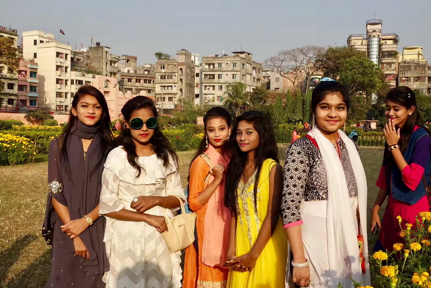 在達卡幾天時間里,感覺孟加拉國盛產(chǎn)美女,加之她們喜歡鮮艷的服飾,一些年輕女性就顯得更加靚麗。李仁奇 攝