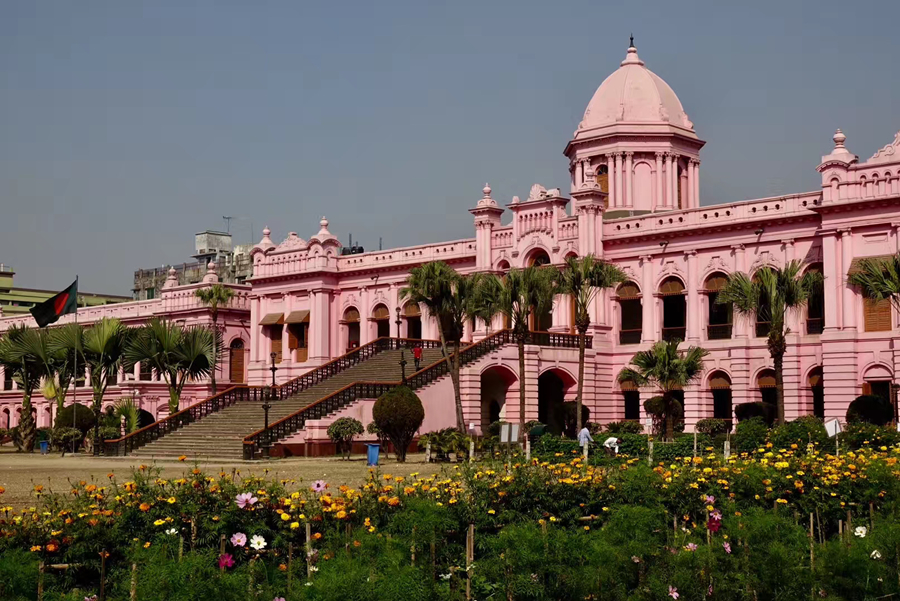 距孟加拉恒河渡口不遠的地方有一座粉紅色宮殿式的豪華建筑。那是1872年一位名叫阿赫桑曼濟勒的地主在法國人留下的倉房基礎(chǔ)上改建的私邸,后來曾在一次龍卷風襲擊時受創(chuàng)。李仁奇 攝