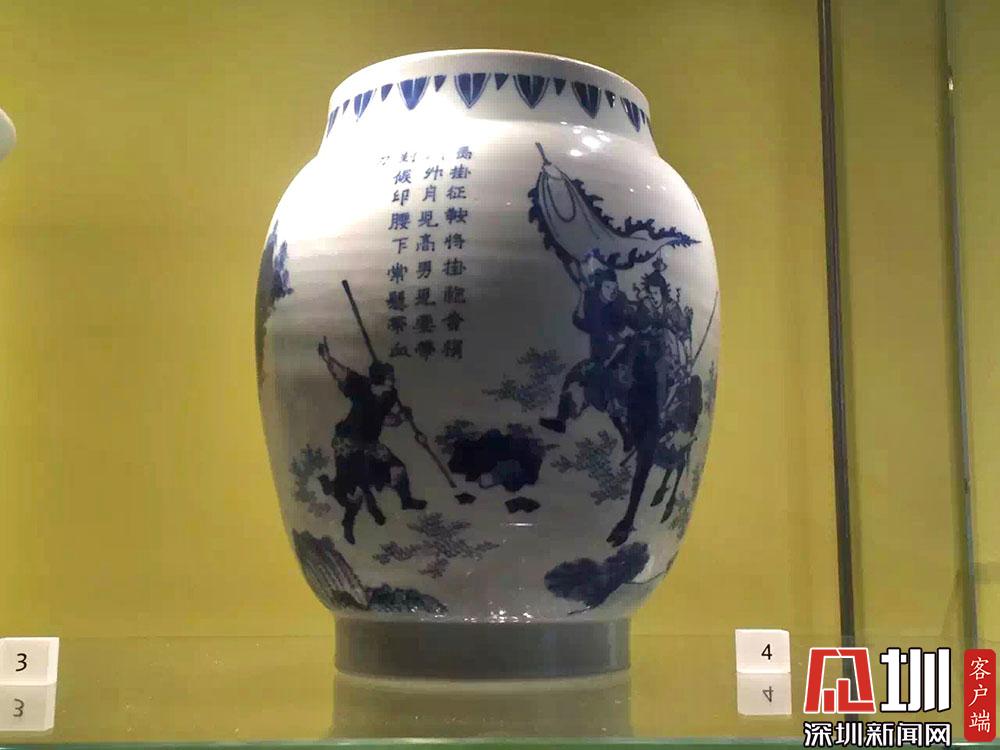 一件青花瓷瓶上有如下配圖詩(shī)文:“馬褂征鞍將褂袍,柳梢門(mén)外月兒高;男兒要帶封侯印,腰下常懸?guī)а?。?/p>