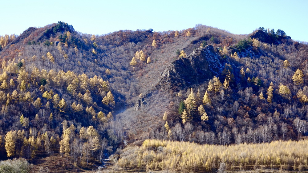 到了10月中旬,這里的草原大多已經(jīng)泛黃,樹葉也大多枯萎,但收獲季節(jié)的一片金黃仍不失為一道美景。李仁奇攝。