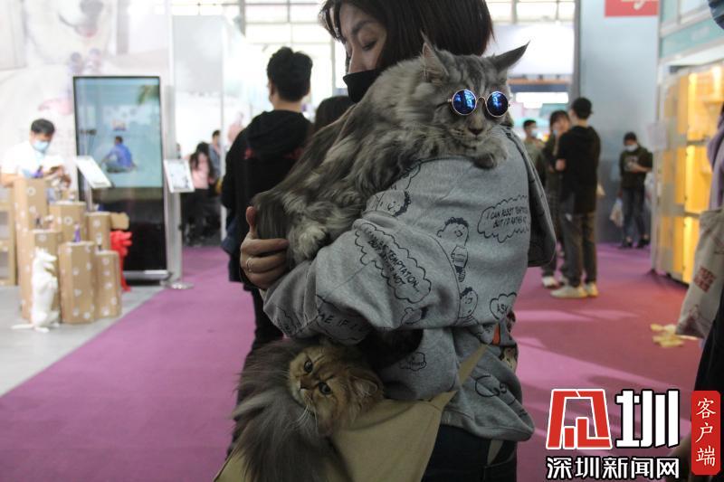 一位觀眾同時(shí)帶著兩只寵物貓逛展。