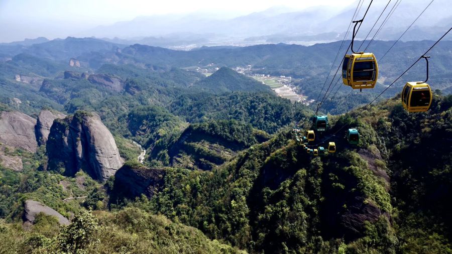 乘索道或步行登上八角寨觀景臺可以俯瞰崀山丹霞的全貌。李仁奇 攝
