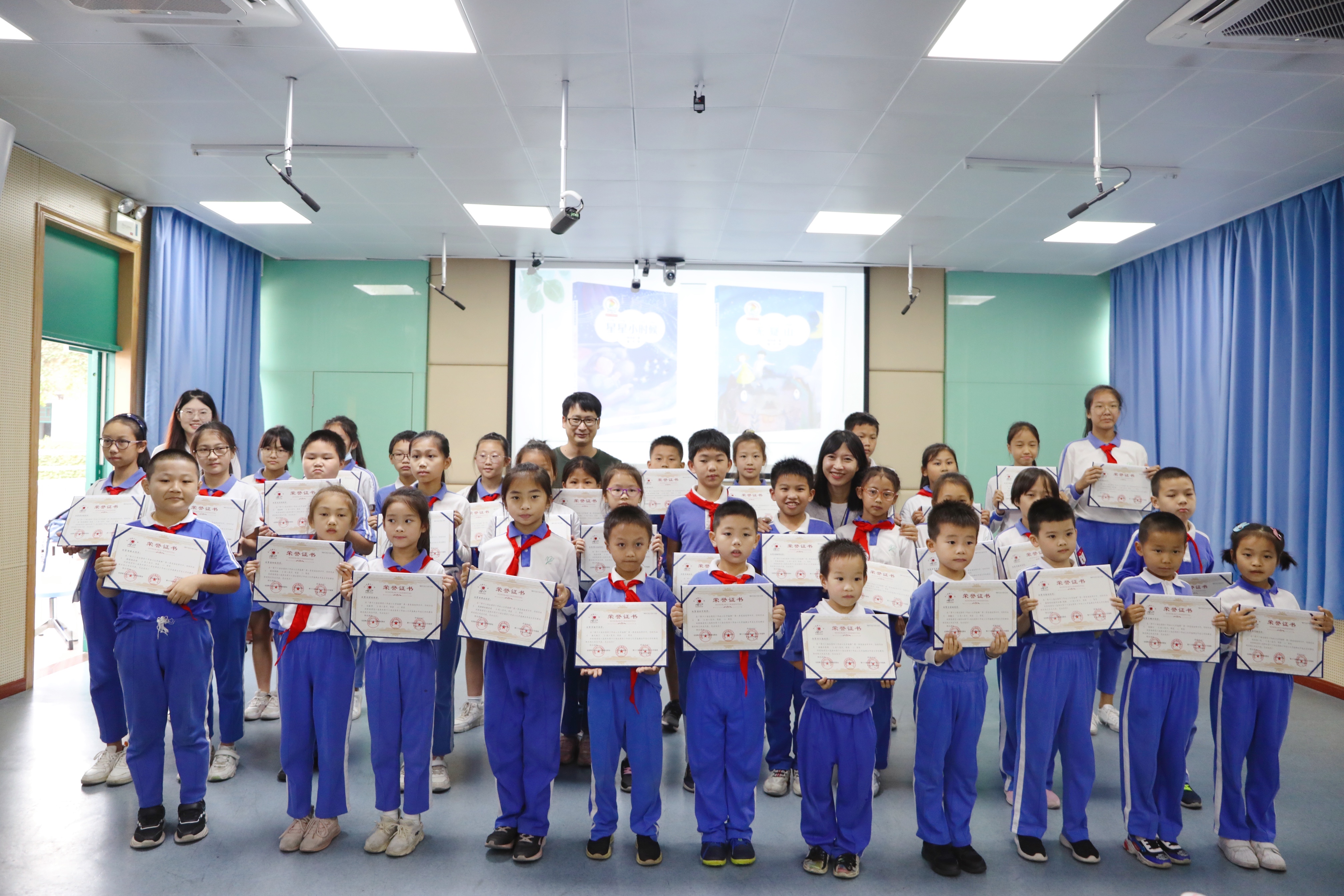 為白芒小學(xué)入選深圳市復(fù)評的孩子頒獎并合影