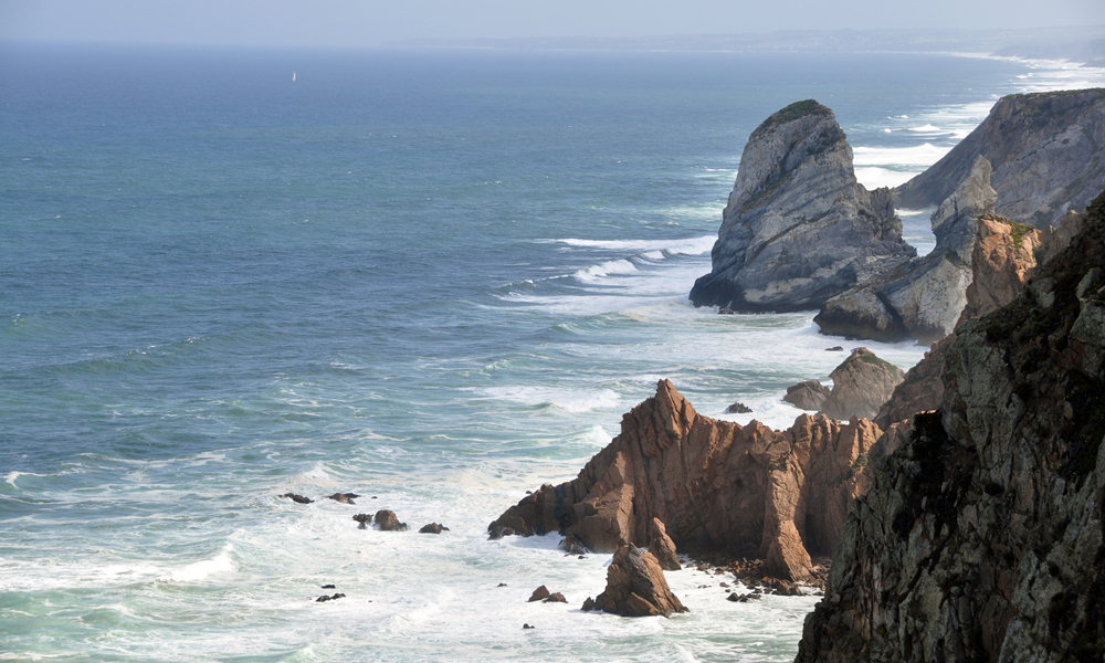 羅卡角跟別處確有不同之處。它險峻得讓人覺得站在山崖邊隨時可能被謀害,那無遮無擋的風(fēng)就是最令人生疑的殺手;還有那些遠看平靜,一挨近它就激情滿懷的海浪,翡翠般碎裂,讓人聯(lián)系到“寧為玉碎”的操守。李仁奇 攝