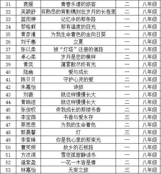 自2021年1月,活動征稿啟動以來,獲得了深圳市廣大中小學(xué)生、教師、文學(xué)愛好者的熱烈響應(yīng)積極參與,吸引了深圳百余所學(xué)校的上萬人關(guān)注報名。現(xiàn)公布光明區(qū)鳳凰學(xué)校晉級復(fù)賽名單如下: