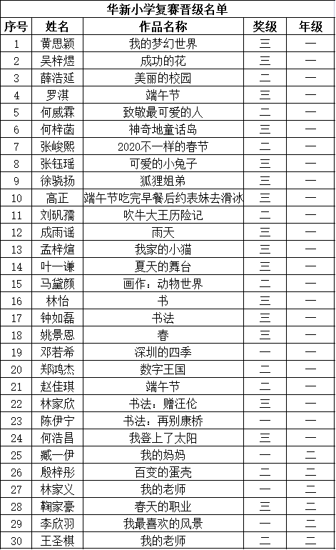 自2021年1月,活動(dòng)征稿啟動(dòng)以來(lái),獲得了深圳市廣大中小學(xué)生、教師、文學(xué)愛(ài)好者的熱烈響應(yīng)積極參與,吸引了深圳百余所學(xué)校的上萬(wàn)人關(guān)注報(bào)名?,F(xiàn)公布福田區(qū)華新小學(xué)晉級(jí)復(fù)賽名單如下:
