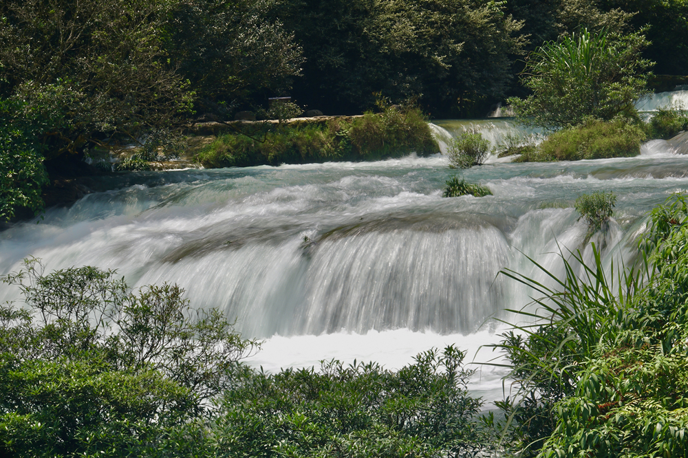 景區(qū)主要有拉雅瀑布、68級(jí)跌水瀑布、石上森林、野豬林、水上森林、天鐘洞、臥龍?zhí)?、鴛鴦湖等21個(gè)景點(diǎn),享有“超級(jí)盆景”之譽(yù)。李仁奇 攝