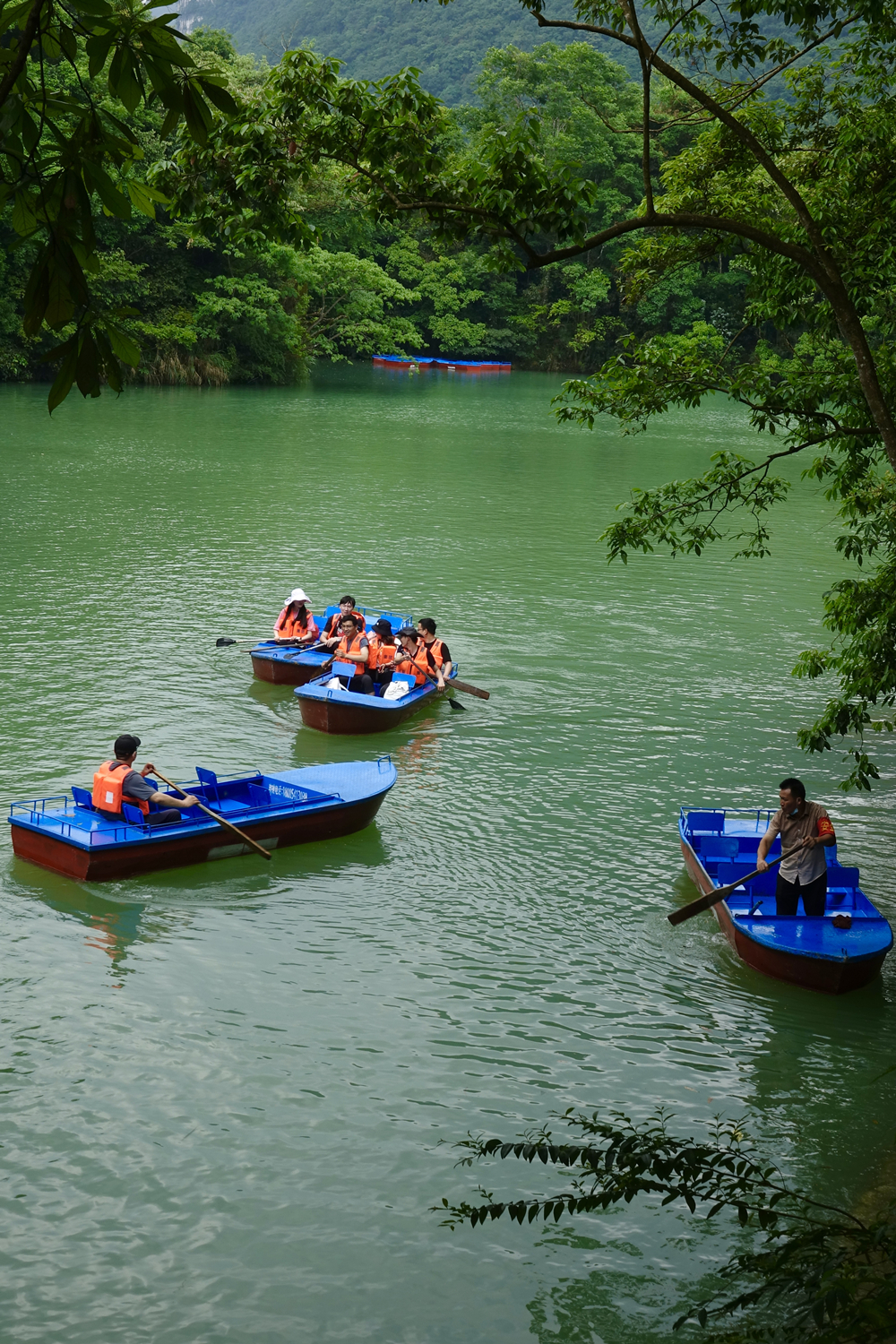 鴛鴦湖是由兩個(gè)大湖和四個(gè)小湖串聯(lián)起來(lái)的水網(wǎng),屬于高原喀斯特湖泊。泛舟湖中,感覺心靈都被洗凈了。李仁奇 攝