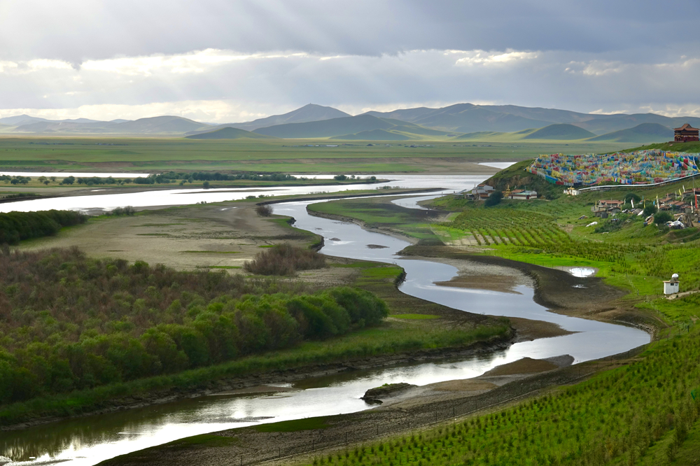 蜿蜒曲折的黃河及其支流白河將寬廣平坦的若爾蓋草原核心地帶分割成無數(shù)河州、小島,形成遼闊的高原濕地、候鳥天堂,被中外科學(xué)家譽為“宇宙中的莊嚴幻影”。李仁奇 攝
