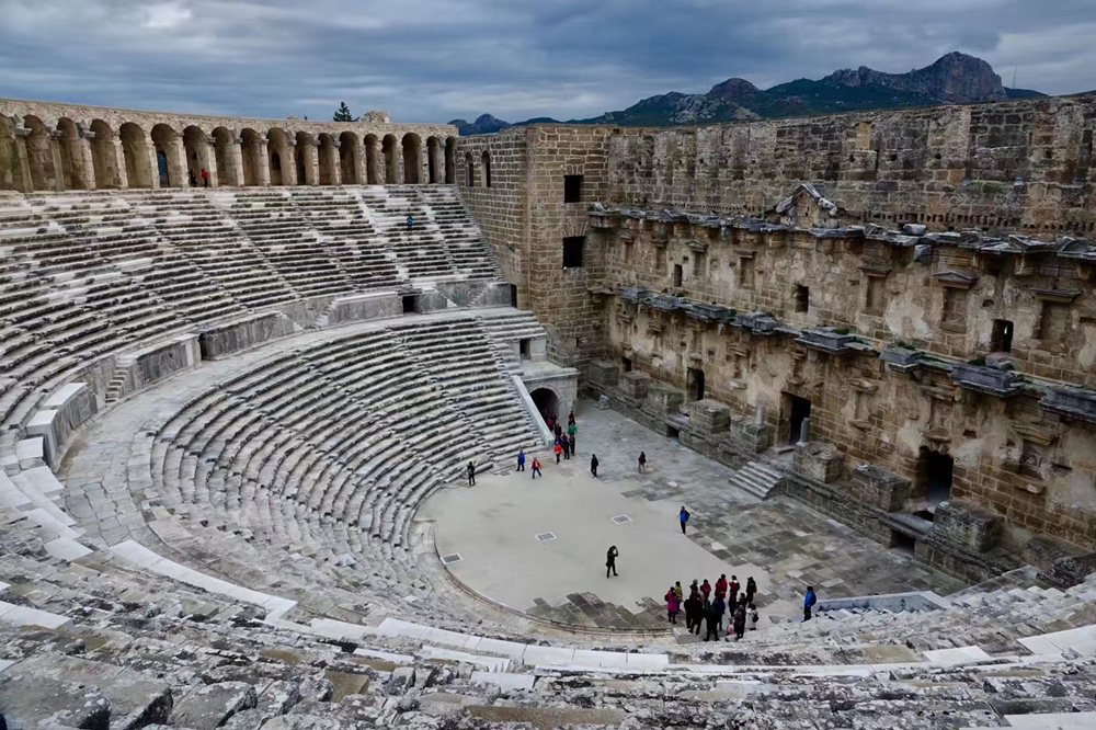 劇場有可容納7000人的扇形石階觀眾席,直徑達96米,整齊規(guī)則的排列。李仁奇 攝