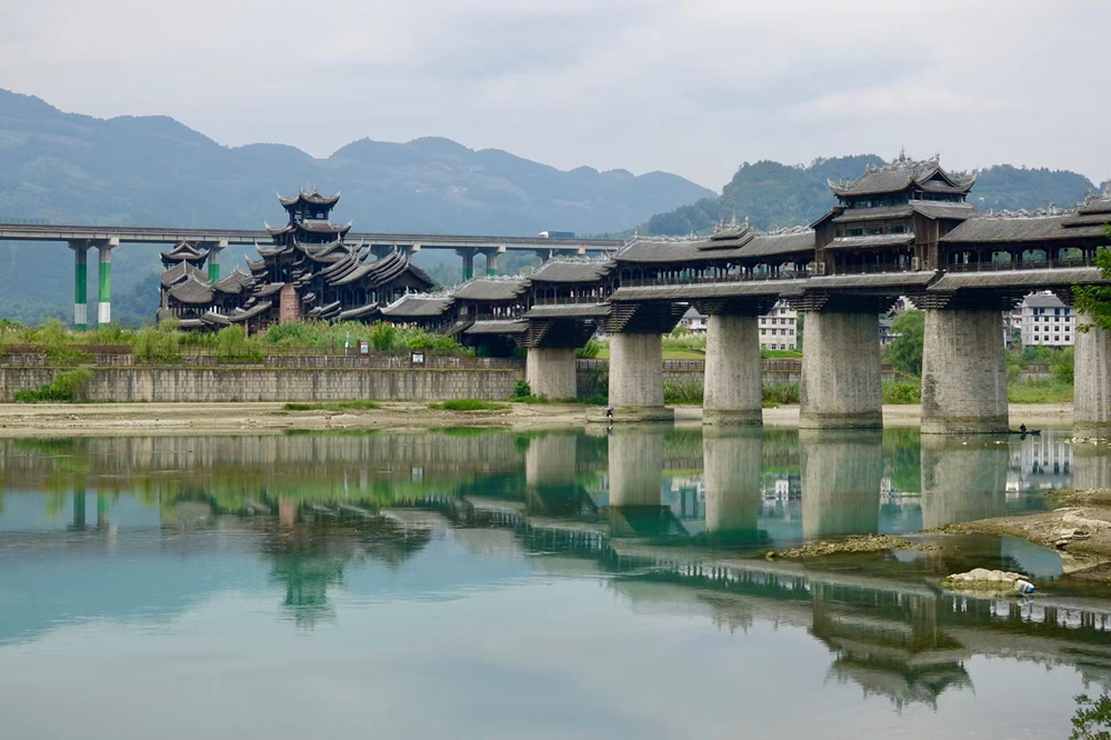 橫跨于濯水古鎮(zhèn)阿蓬江上的超長廊橋有“世界第一風雨廊橋”之稱。李仁奇 攝