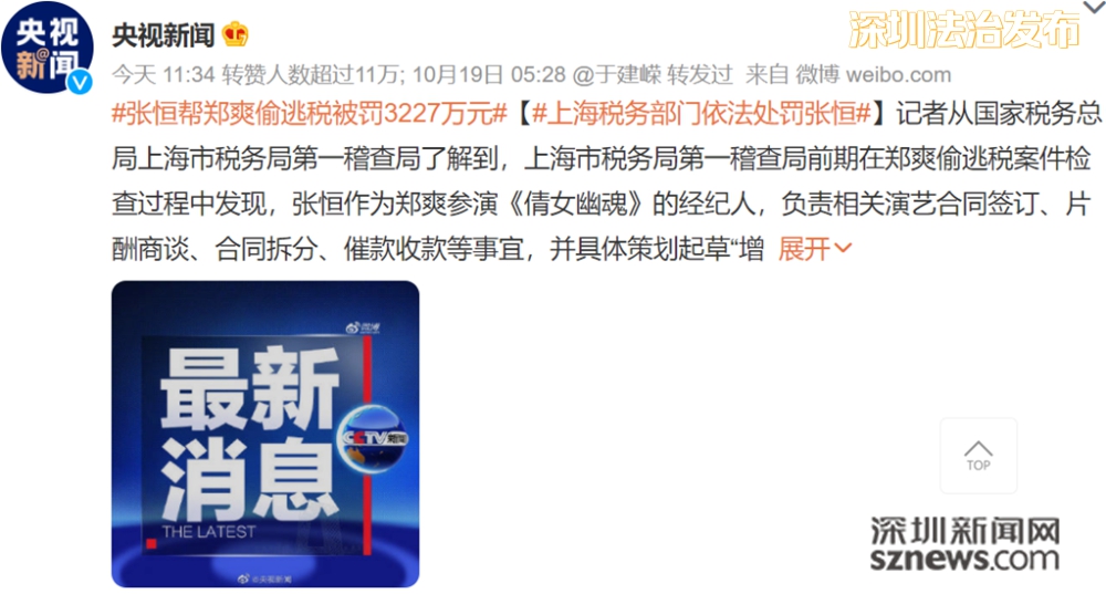 (相關(guān)報(bào)道:鄭爽逃稅張恒被罰3227萬(wàn)明星經(jīng)紀(jì)人為啥也被盯上了