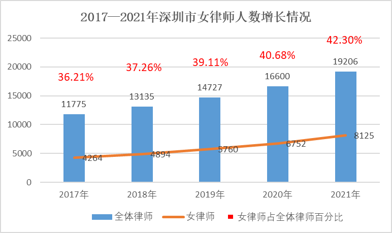 一、深圳女律師隊伍2017—2021年增長分析:深圳女律師占比超42%