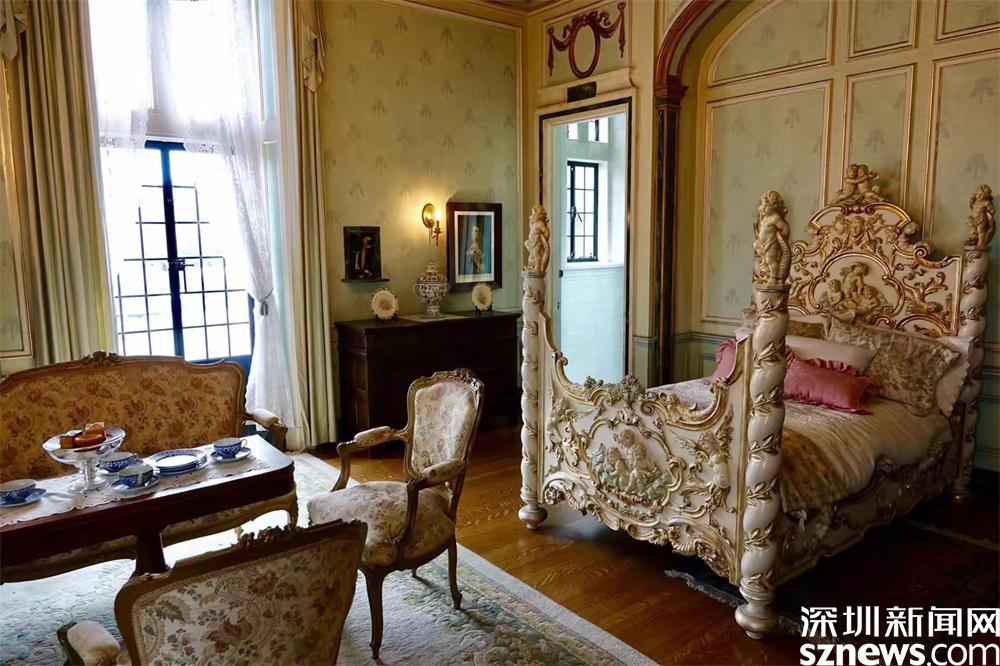 這座城堡擁有98個房間,包括放置雕漆屏風和清朝帝后塑像的中式風格房間。李仁奇 攝
