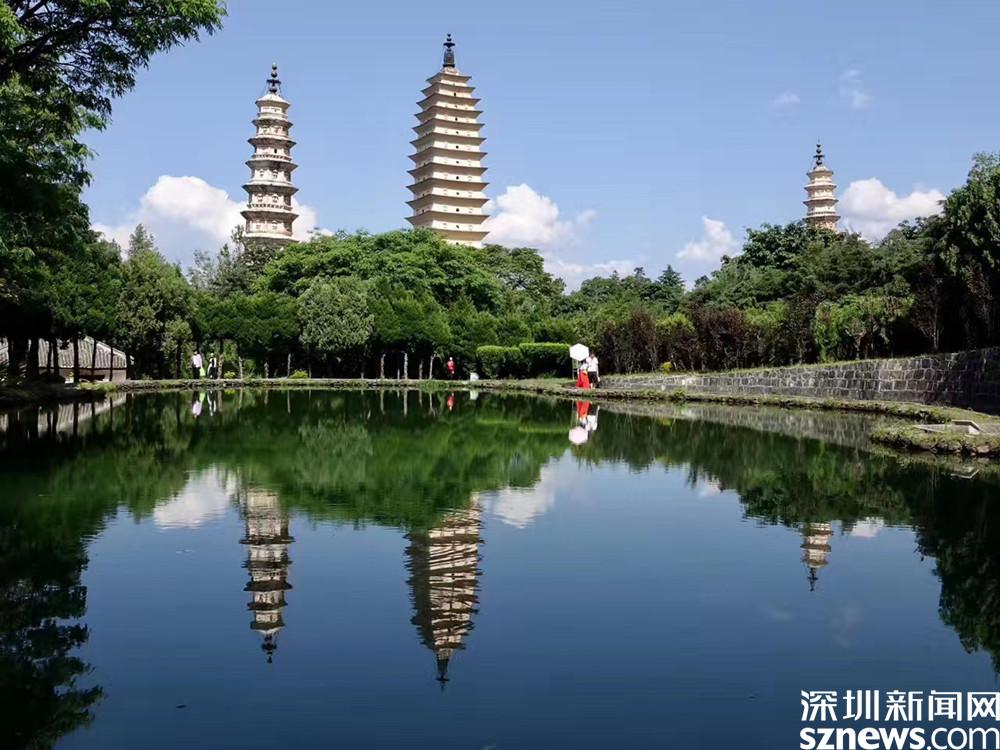 崇圣寺三塔與蝴蝶泉一樣位于洱海西岸,崇圣寺三塔由一大二小組成。李仁奇 攝