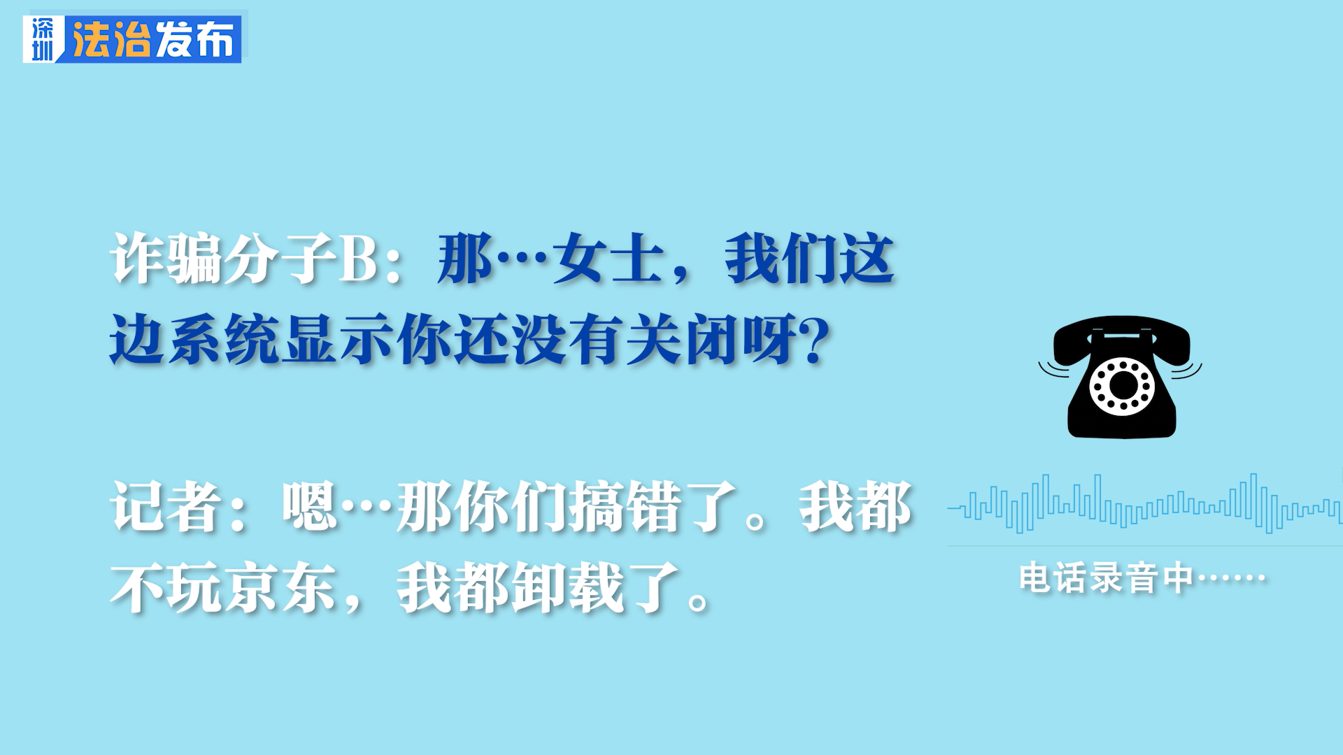詐騙分子A:(語速很快)但是我們這邊系統(tǒng)顯示你沒有關(guān)閉成功?。∪绻P(guān)閉成功的話……