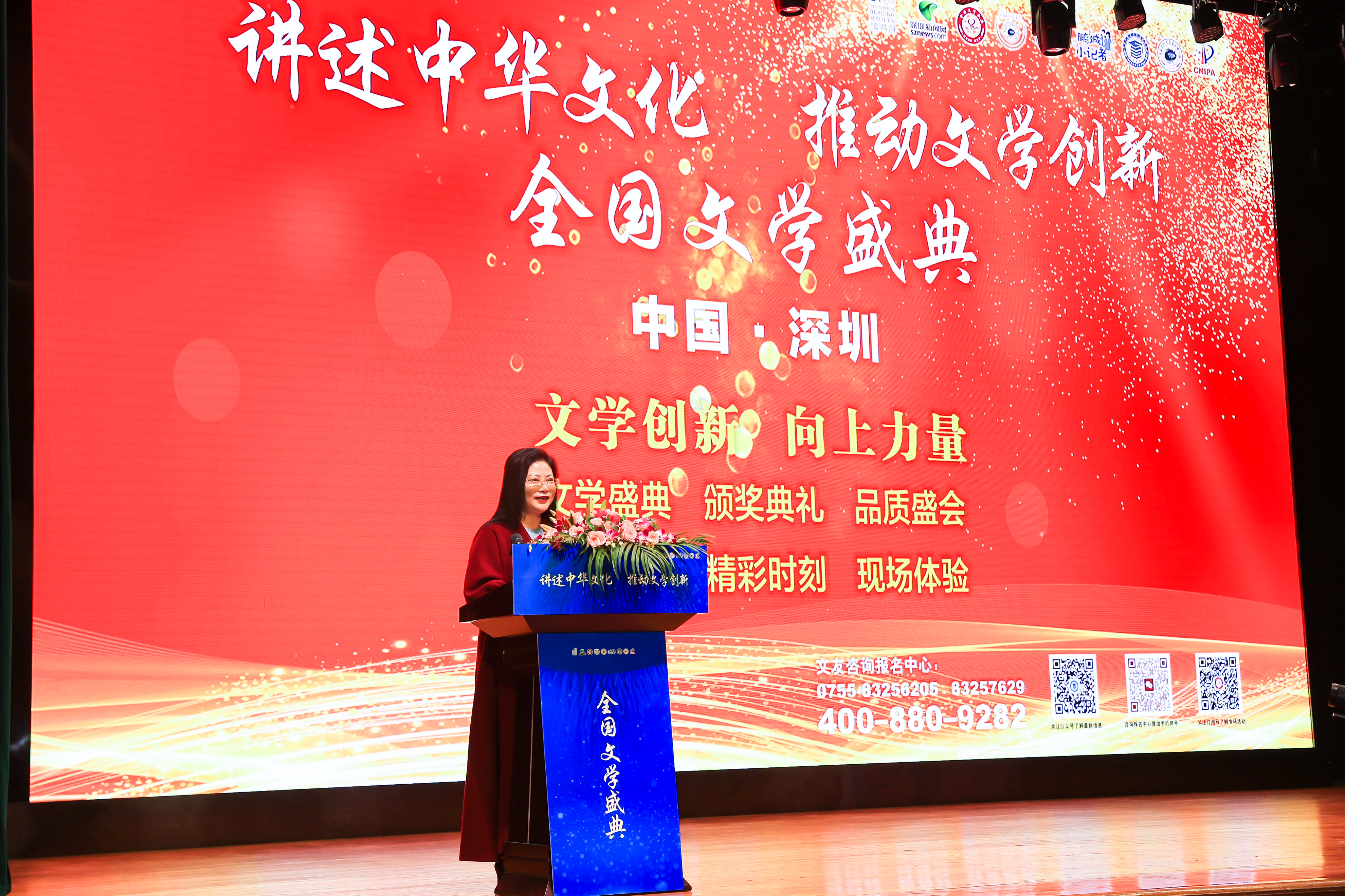 全國(guó)文學(xué)盛典系列文創(chuàng)平臺(tái)聯(lián)合發(fā)起人肖硯寧致辭中