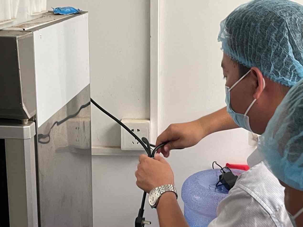 執(zhí)法人員也對(duì)后廚的設(shè)施進(jìn)行了細(xì)致檢查。在檢查消毒柜時(shí),執(zhí)法人員發(fā)現(xiàn)該消毒柜未連通電源,對(duì)存放在其中的餐具起不到消毒的作用;而在配餐間,存放菜品的保溫池也并未接通電源,執(zhí)法人員稱,若保溫池不接通電源,菜品的中心溫度極有可能無法保持在70°以上,容易滋生細(xì)菌,造成食物中毒。