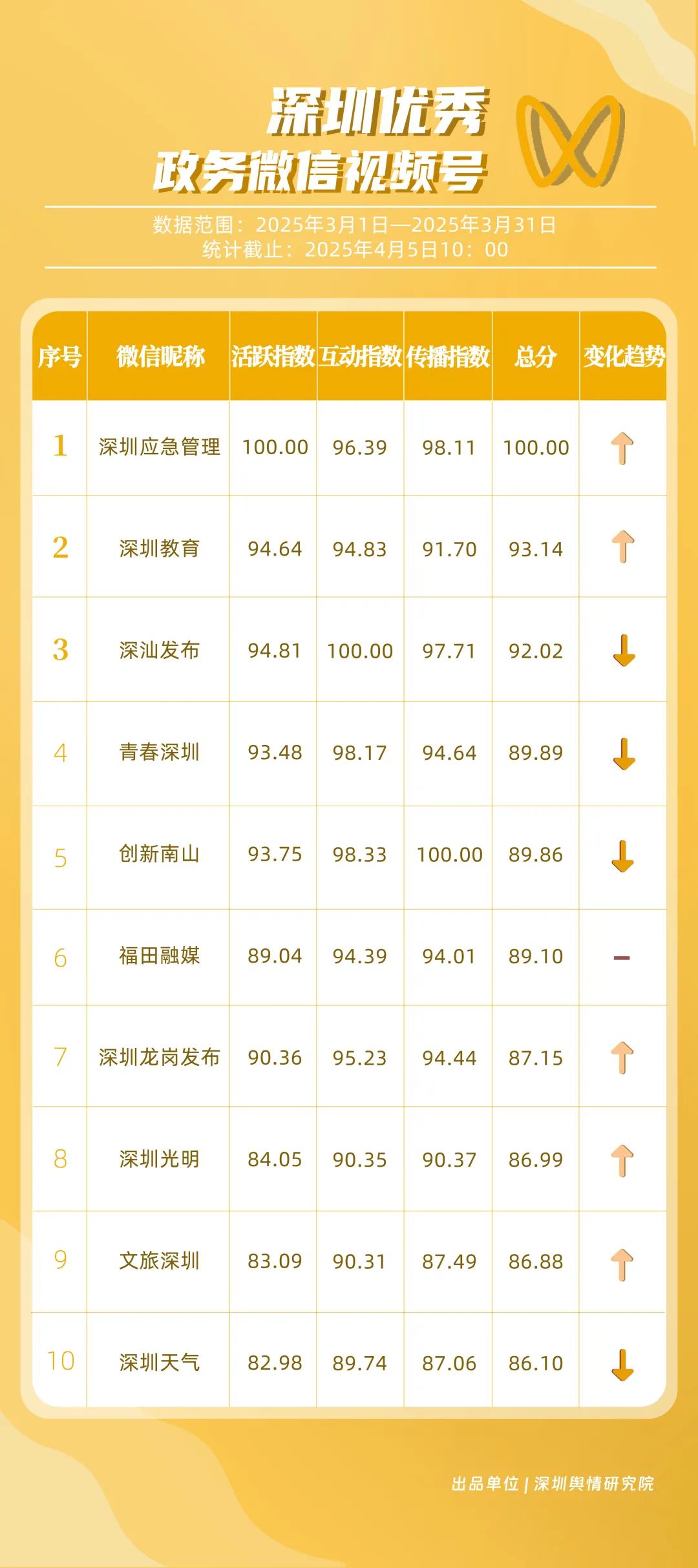 2025年3月期《深圳優(yōu)秀政務(wù)新媒體矩陣》發(fā)布,讓我們共同關(guān)注哪些矩陣以精準(zhǔn)傳播、智慧服務(wù)與創(chuàng)新實(shí)踐,在政務(wù)新媒體領(lǐng)域打造出具有示范價(jià)值的標(biāo)桿案例,以矩陣合力構(gòu)建政務(wù)傳播新生態(tài),為深圳城市網(wǎng)絡(luò)形象塑造持續(xù)注入新動(dòng)能。