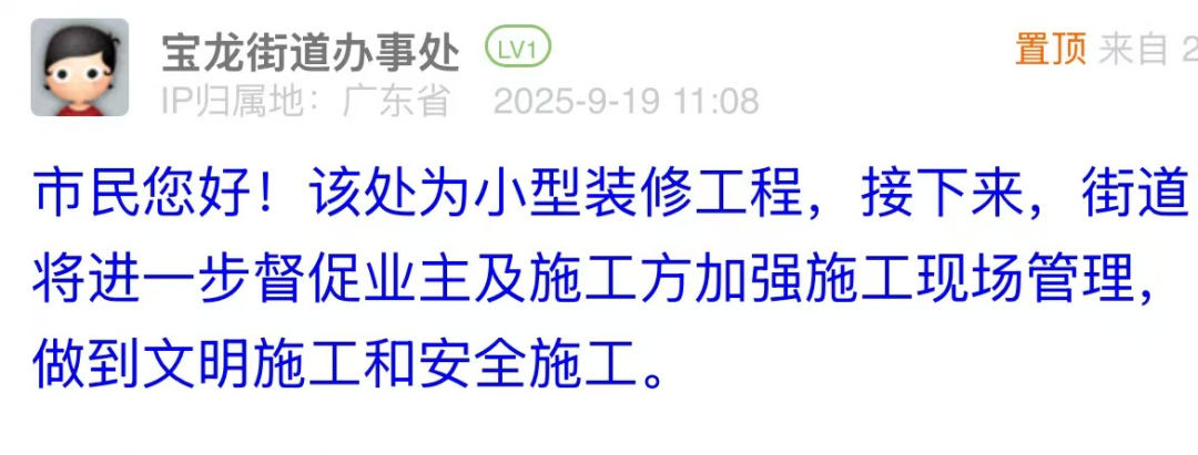 優(yōu)化建議:該回應(yīng)較為空泛,市民明確反映了“砸墻聲嚴(yán)重?cái)_民”“存在安全隱患”的核心訴求,但回復(fù)僅籠統(tǒng)說(shuō)明是“小型裝修工程”并“督促加強(qiáng)管理”,未針對(duì)關(guān)鍵訴求提出具體解決方案。建議減少“加強(qiáng)管理”類模糊表述,以具體措施回應(yīng)市民疑問(wèn),如若雜物已清理,可附現(xiàn)場(chǎng)圖片佐證,若未清理則需明確施工時(shí)限、確保施工時(shí)間合理,以務(wù)實(shí)舉措回應(yīng)市民疑問(wèn),增強(qiáng)回應(yīng)溫度。