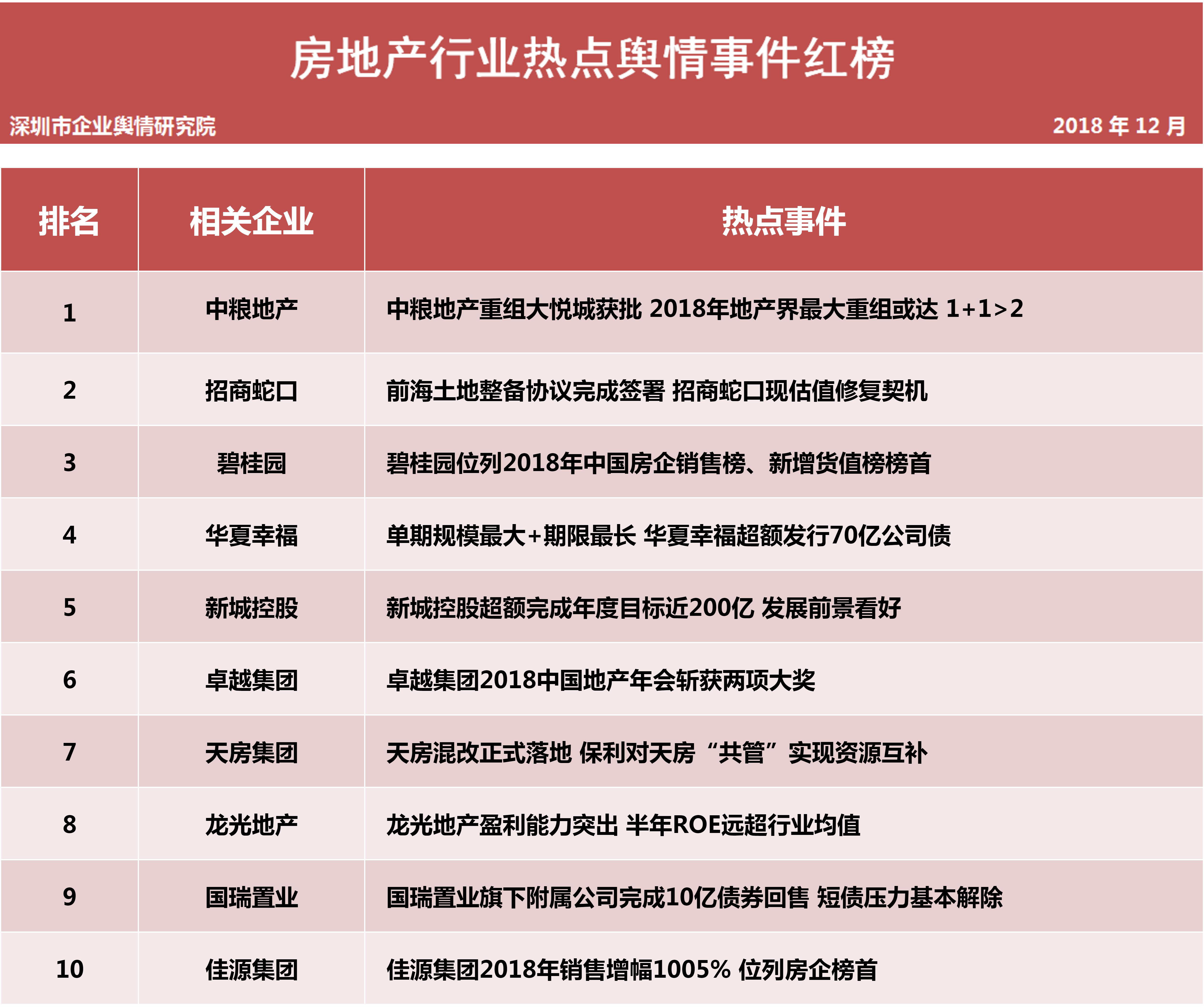 1月31日,深圳企業(yè)輿情研究院發(fā)布第十二批企業(yè)輿情榜單。本次榜單重點(diǎn)聚焦房地產(chǎn)及醫(yī)藥保健兩個行業(yè)。